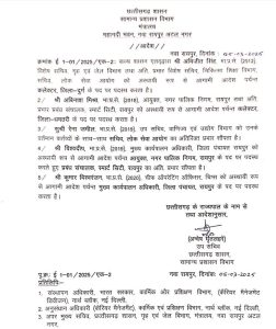 अबिनाश मिश्रा (IAS 2018) – रायपुर नगर निगम आयुक्त से स्थानांतरित होकर कलेक्टर, धमतरी नियुक्त।