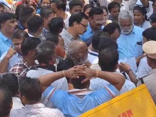 अतिक्रमण के दौरान निगम कर्मियों से हुई मारपीट के बाद कर्मचारी निगम कार्यालय में सुरक्षा को लेकर प्रदर्शन किया. इसके बाद कलेक्ट्रेट पहुंचे, यहां ज्ञापन सौंपकर महिला और उनके बच्चों के खिलाफ कार्रवाई की मांग की है. तोड़फोड़ में 10-12 लाख रुपए की शासकीय संपत्ति को नुकसान पहुंचा है