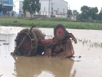 ट्रैक्टर को स्टार्ट करते ही उछलकर पलटा