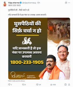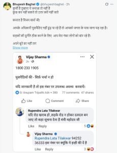 इस सवाल पर जवाब देते हुए विजय शर्मा ने पूर्व मुख्यमंत्री भूपेश बघेल का मोबाइल नंबर साझा कर दिया और लिखा-