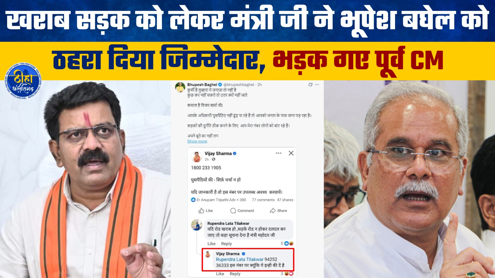 Raipur News: राजधानी रायपुर में खराब सड़कों को लेकर शुरू हुई बहस अब सियासी जंग में बदल गई है। सोशल मीडिया पर उप मुख्यमंत्री विजय शर्मा और पूर्व मुख्यमंत्री भूपेश बघेल के बीच तीखा वार-पलटवार देखने को मिला।