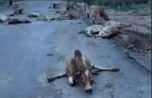 जानकारी के मुताबिक, 30 जुलाई की रात लिमतरा के पास बिलासपुर-रायपुर नेशनल हाईवे पर मवेशियों का झुंड सड़क पर बैठा था। उसी समय तेज रफ्तार अज्ञात वाहन ने मवेशियों को कुचल दिया। गुरुवार की सुबह लोगों ने देखा तब हाईवे पर गौवंशों की लाशें बिखरी पड़ी थी।