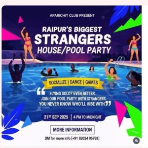 पिछले कुछ दिनों से इंस्टाग्राम और अन्य प्लेटफॉर्म्स पर ‘न्यूड पार्टी’, ‘स्ट्रेंजर पार्टी’ (Raipur stranger party), और ‘हाउस पूल पार्टी’ (Raipur pool party drugs) जैसे आयोजनों के इन्विटेशन वायरल हो रहे हैं। इनमें पार्टी की तारीख और समय का उल्लेख है, साथ ही शराब और ड्रग्स परोसने के संकेत दिए गए हैं। नग्नता का आकर्षण दिखाकर युवाओं को लुभाने का प्रयास किया जा रहा है।