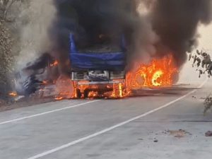 हादसे के दौरान कोयला लदे ट्रेलर का चालक वाहन से कूदकर बाहर निकलने में सफल रहा। वहीं सीमेंट से भरे ट्रक का चालक और हेल्पर केबिन में फंस गए। आग की चपेट में आने से मौके पर ही दोनों की मौत हो गई।